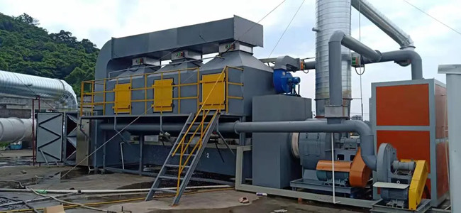 中濃度廢氣處理:高效除塵設(shè)備+催化燃燒設(shè)備+干中和除臭法;